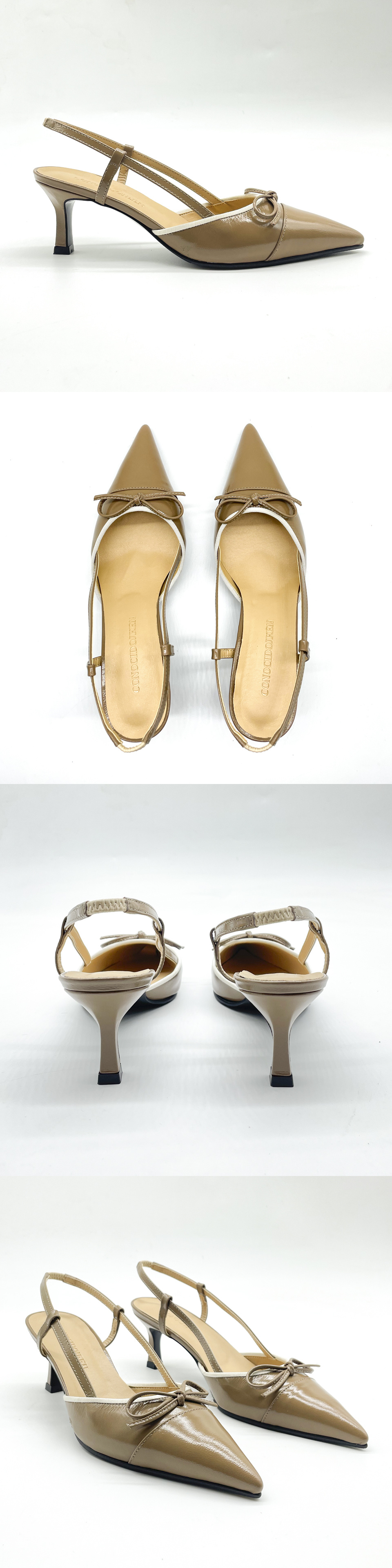 +Shoes Story코노시도진 디자이너가 직접개발한 라스트 디자인으로 옆라인이 돋보이면서앞코가 포인트되어 다리가 길어보이는 디자인입니다.앞코 절개라인이 들어가 엣지있는 형태의 디자인으로 매력이 있으며,리본디자인으로 클래식함을 잃지 않고 있는 슬링백 디자인입니다.