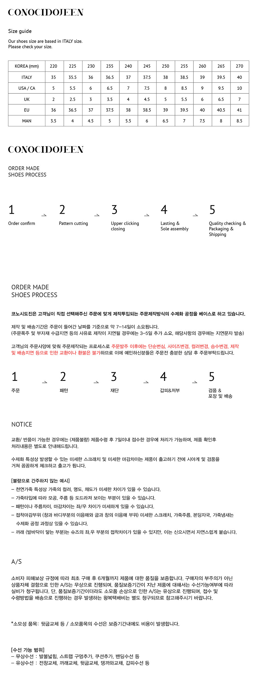 예시) 235-240 중간사이즈/ 235사이즈 선택 후 배송메세지에 [중간사이즈] 기입. 237mm 제작해드립니다.
